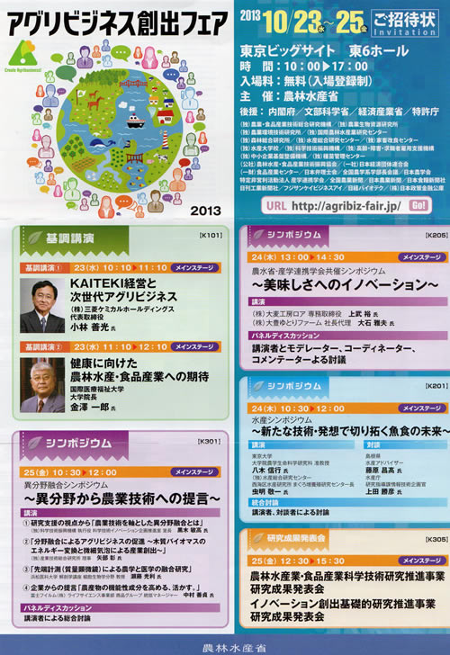 2013年10月23日・農林水産省主催/アグリビジネス創出フェアへの出展